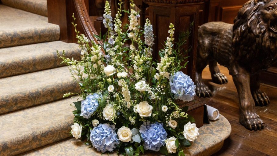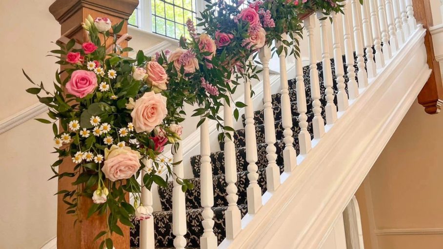 The flowers are yours to keep of course and to give away to friends and family, plus any containers/vases you purchased from us, but the hired items like pedestal stands, bud vases will be collected by us the following day from the venue where the flowers were installed.