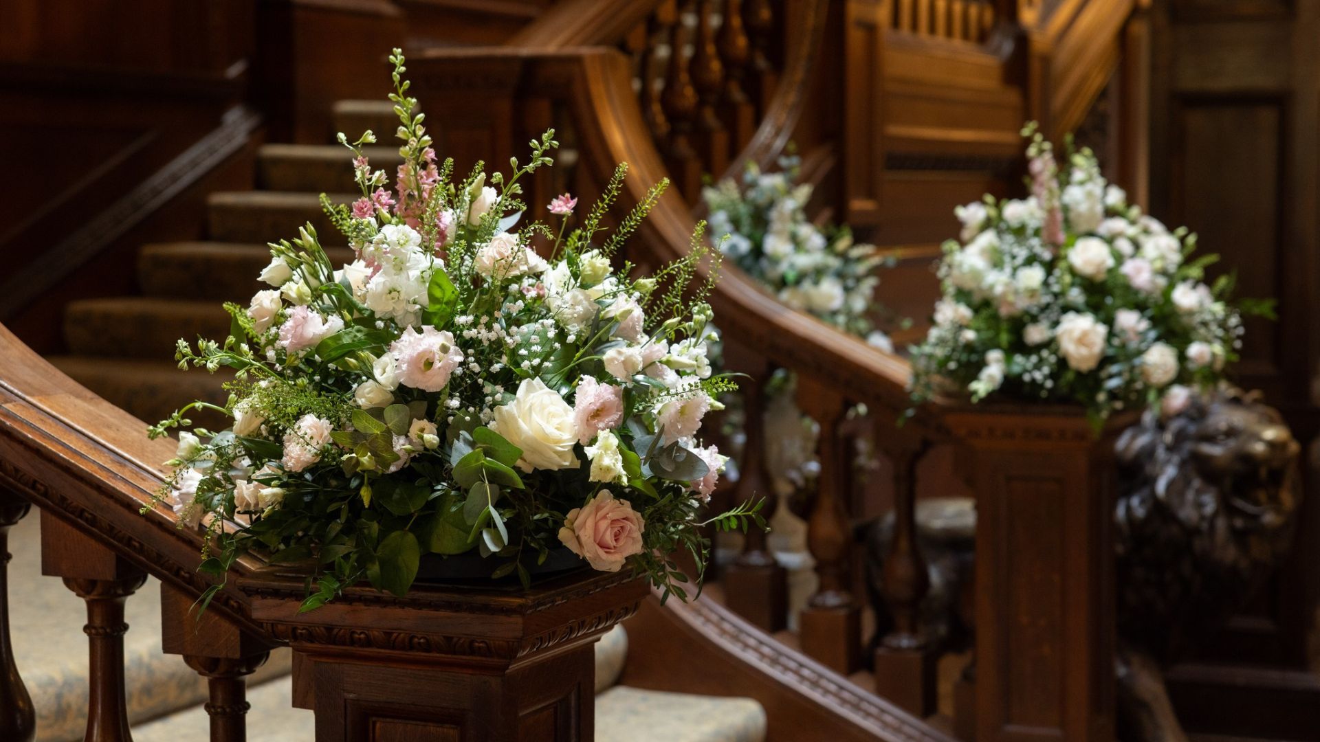 The flowers are yours to keep of course and to give away to friends and family, plus any containers/vases you purchased from us, but the hired items like pedestal stands, bud vases will be collected by us the following day from the venue where the flowers were installed.