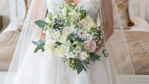 Bourton Hall Whites, pale pinks and eucalyptus